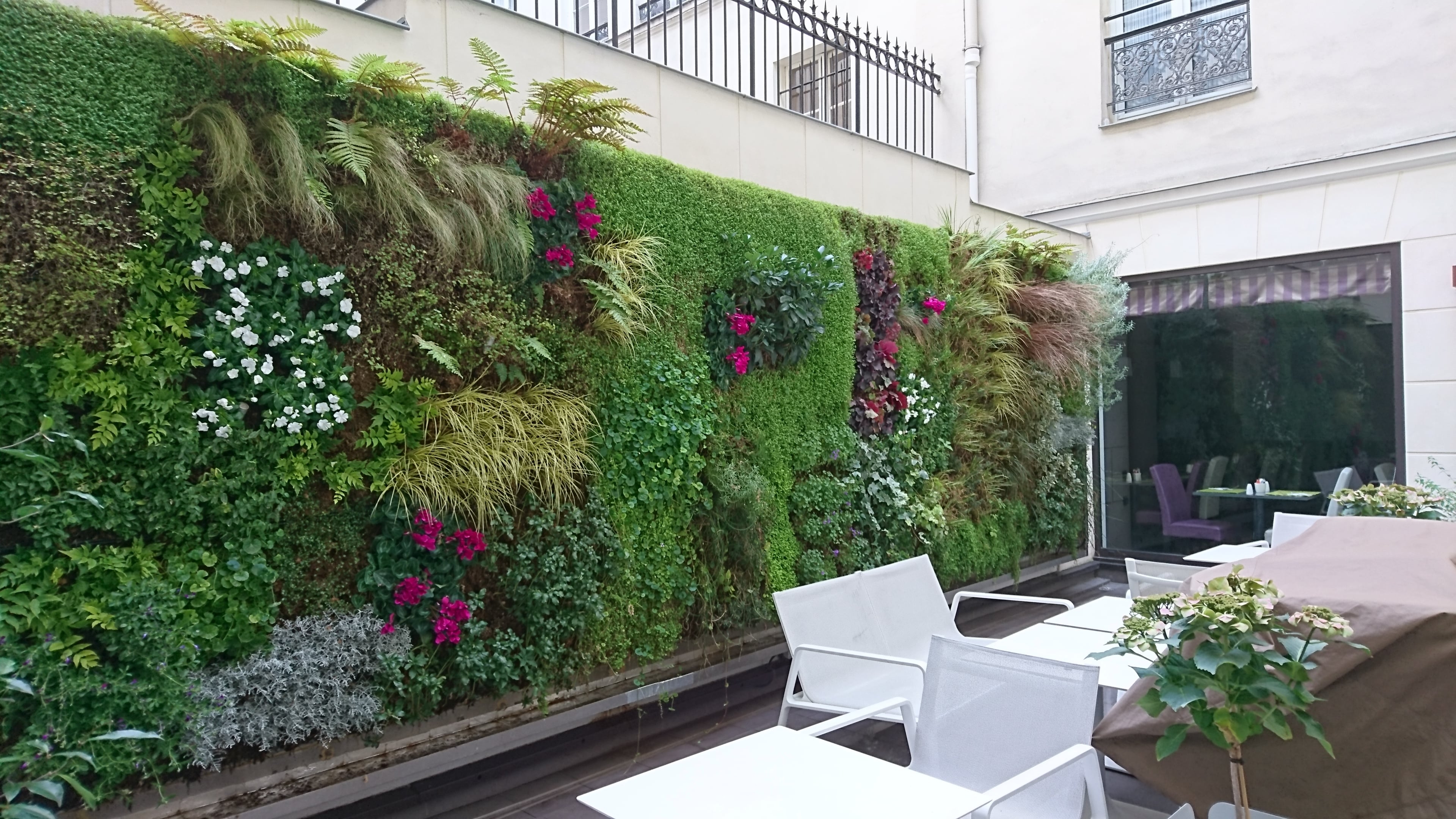 Un mur végétal d'extérieur demande moins d'entretien qu'un jardin traditionnel